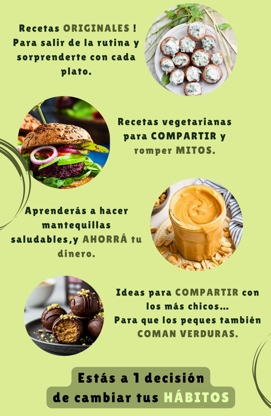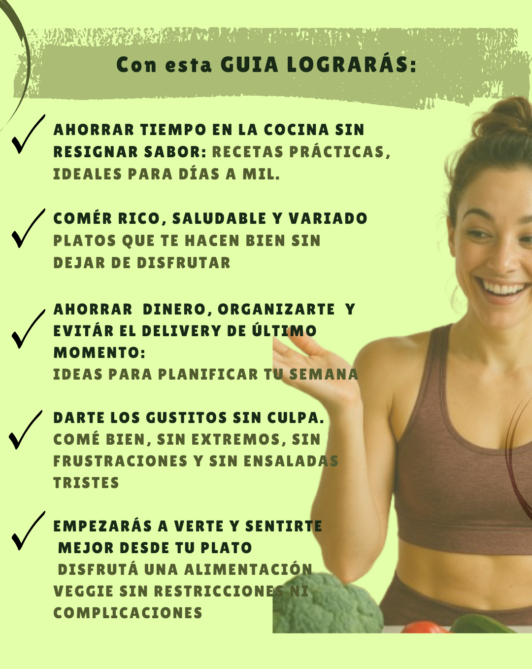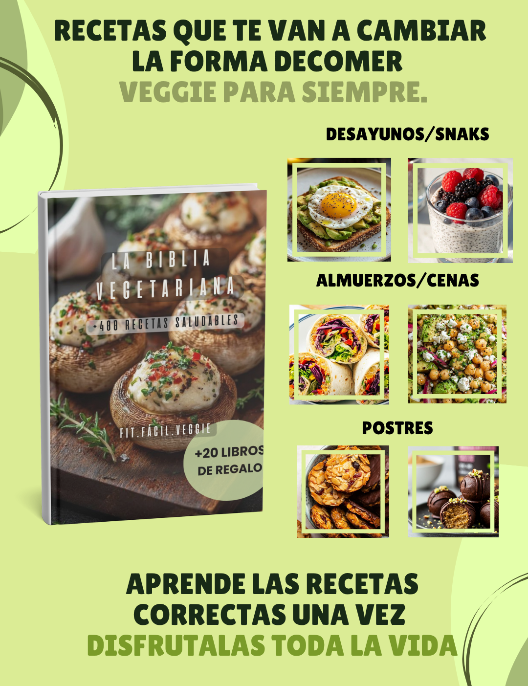 La guía principal contiene recetas 100% vegetarianas, fáciles de preparar, con ingredientes accesibles y pensadas para el día a día. Encontrarás desayunos, almuerzos, cenas y snacks saludables.