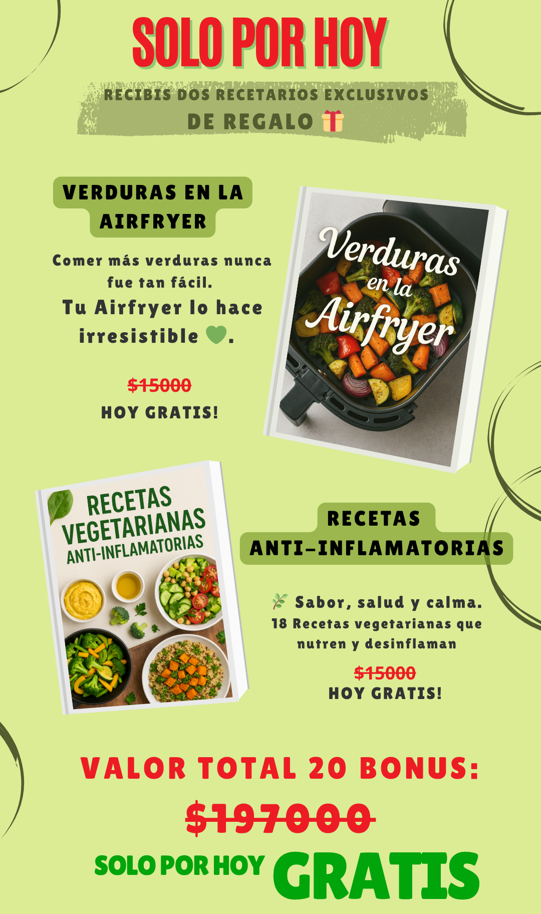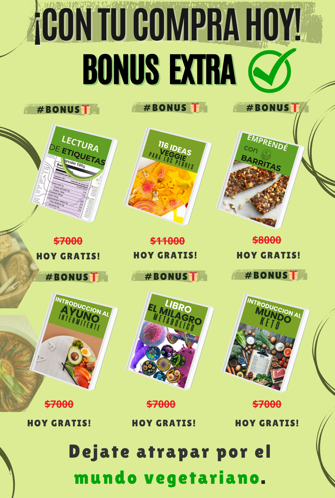 Ademas encontraras BONUS con recetarios de regalo lleno de ideas para no aburrirte.